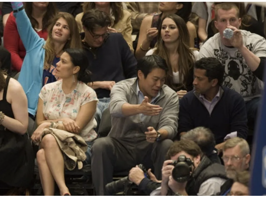 NY POST - The president of investment firm ISI Group (far right in navy pullover) is a longtime season-ticket holder, and uses his courtside real estate like an extension of his office.